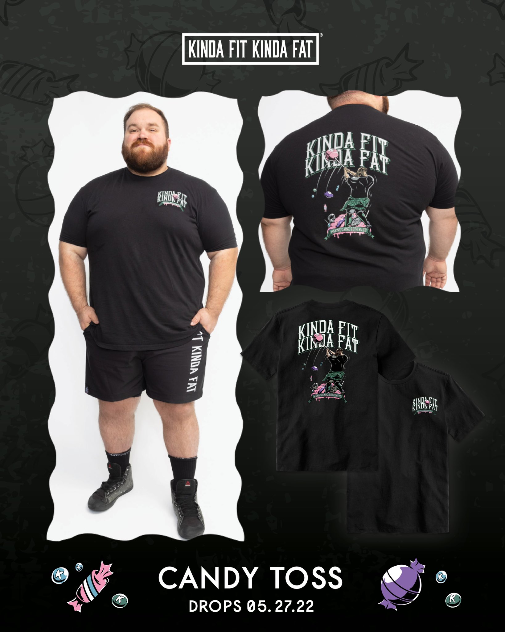 Start making gainz both ways and shop Kinda Fit Kinda Fat apparel to join the movement.